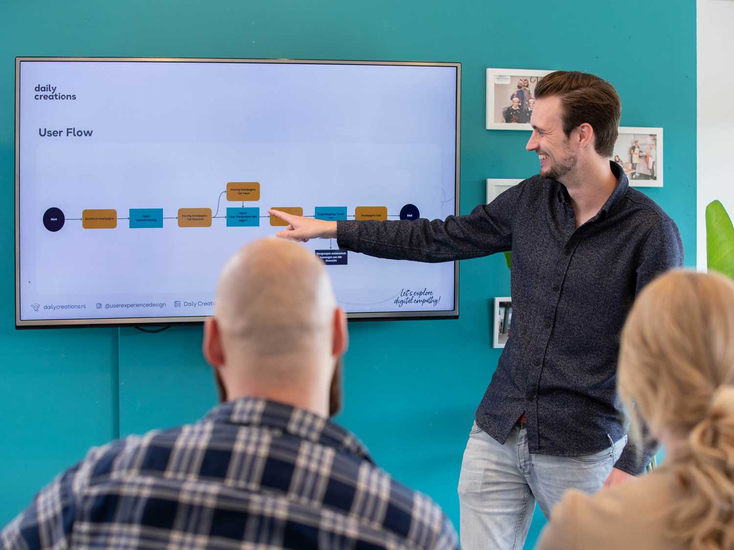 Wij zijn geen designbureau met een ‘u-roept-wij-draaien’- mentaliteit. In co-creatie met onze klanten en de eindgebruikers creëren wij dagelijks digitale oplossingen. Dus handen uit de mouwen en aan de slag!